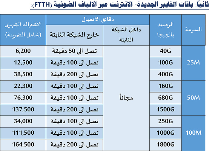 – باقة 8 ميجا تم زيادة الرصيد إلى 120 جيجا بسعر 12600 ريال، و420 جيجا بسعر 39375 ريال، و720 جيجا بسعر 59850 ريال
