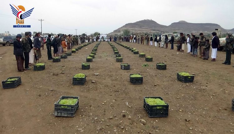 سير أبناء عزلة صرف في مديرية بني حشيش بمحافظة صنعاء، اليوم، قافلة عنب للمرابطين في الجبهات بمناسبة العام الهجري الجديد 1444ھ.