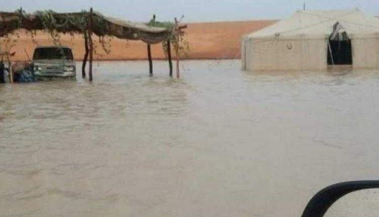 شاهد سيول الأمطار تجتاح منازل المواطنين بمحافظة الجوف
