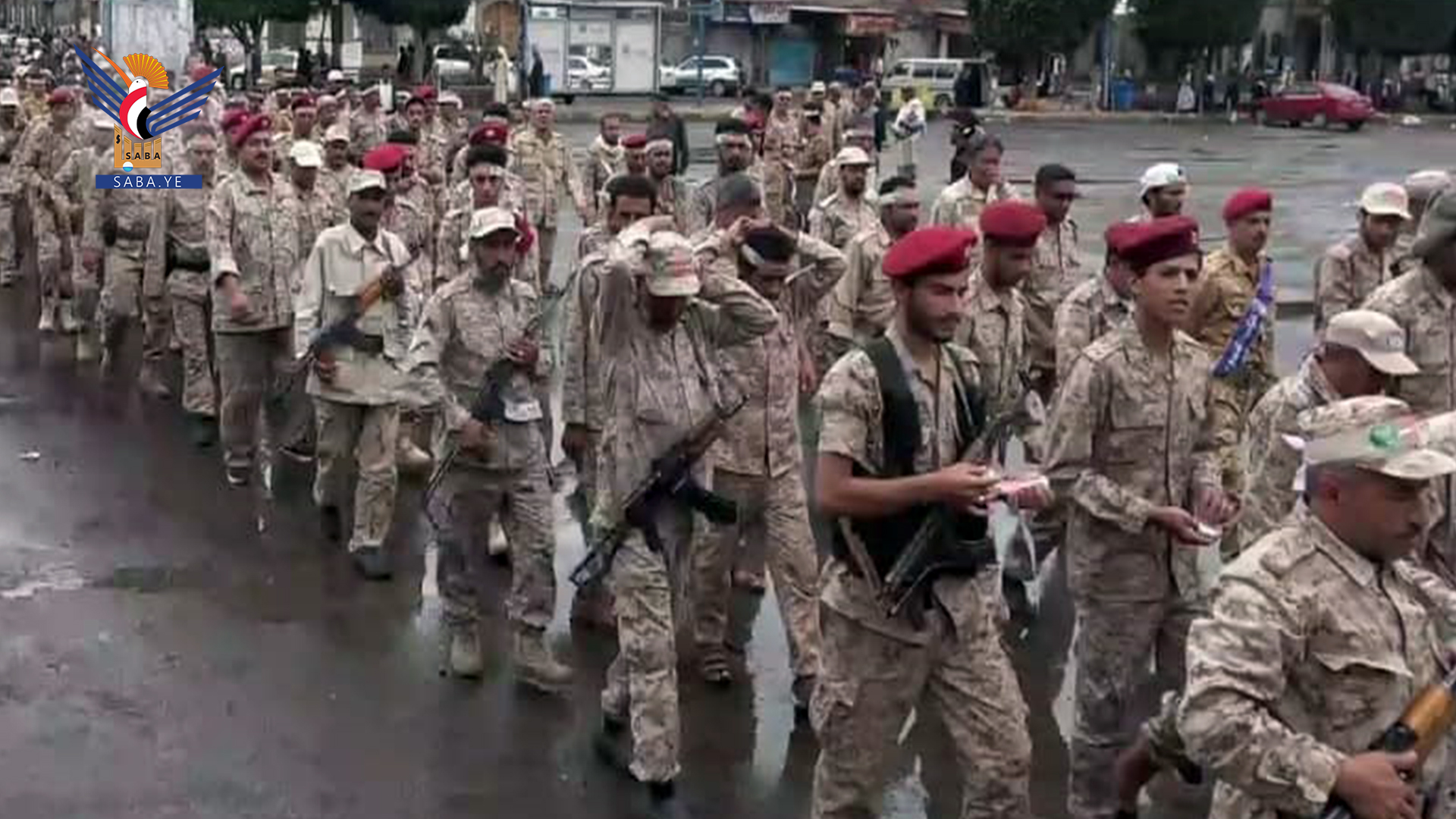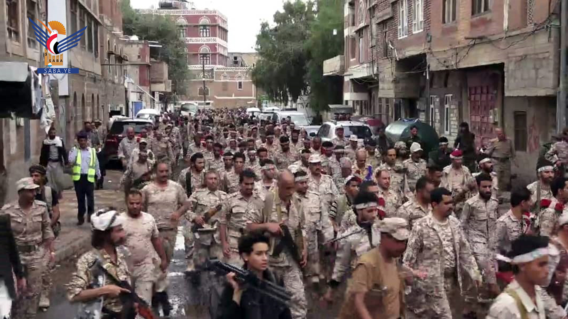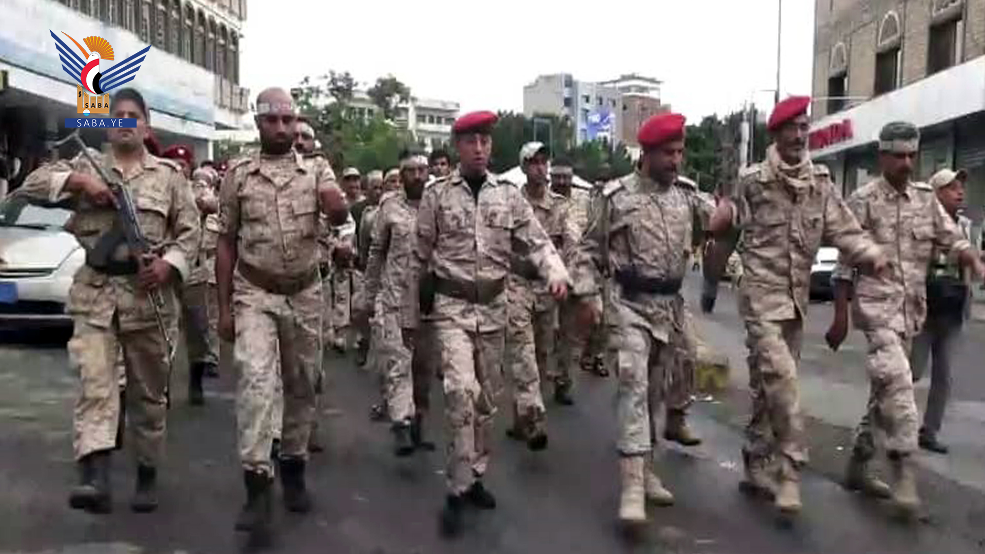 نظّم أبناء مديرية التحرير في أمانة العاصمة صنعاء، الخميس، عرضاً عسكرياً رمزياً ضمن جهود تعزيز الصمود والجهوزية لرفد الجبهات في مواجهة العدوان، تحت شعار “وإن عدتم عدنا”.