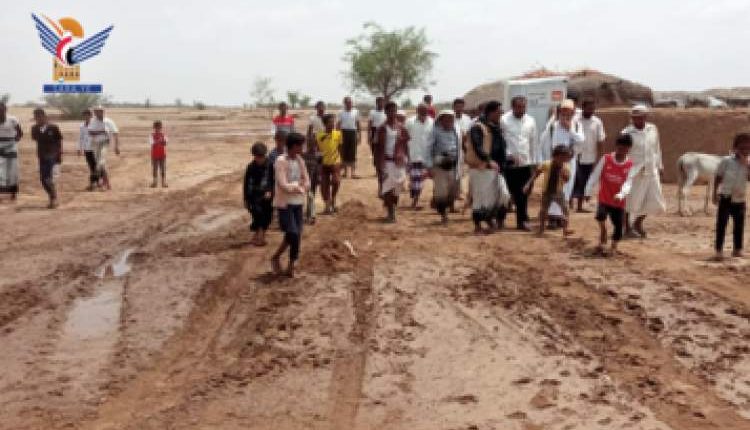 واستمع ومعه مدير المديرية علي صوعان من النازحين إلى شرح حول الأضرار التي خلفتها السيول وأدت إلى جرف العديد من المنازل ونفوق عشرات المواشي.