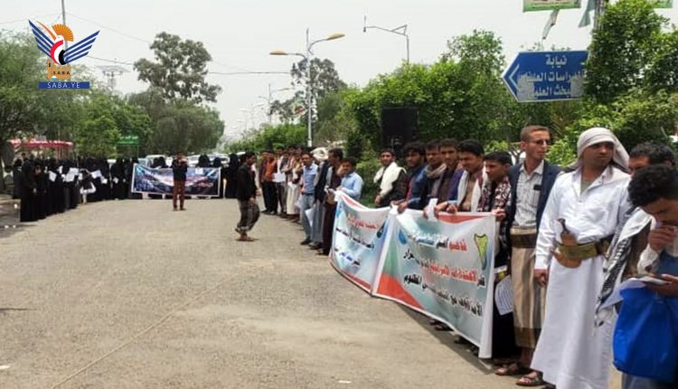 نظمت جامعة صنعاء اليوم وقفة احتجاجية للتنديد باستمرار خروقات تحالف العدوان للهدنة المعلنة والحصار على اليمن.