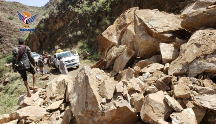 إنهيارات صخرية تغلق الطريق الرئيسي الرابط بين مديرية بدبدة وصنعاء