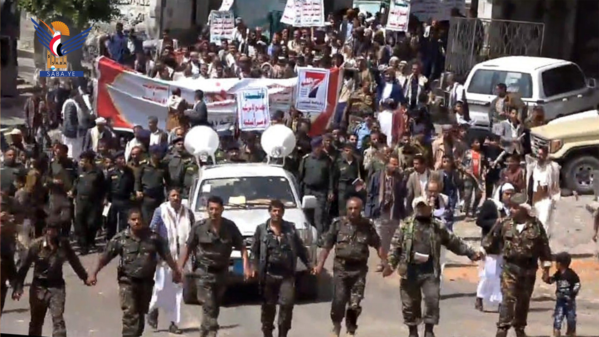 وفي المسيرة التي شهدتها عاصمة المحافظة وتقدمها الأمين العام المجلس المحلي الدكتور علي الزيكم ووكلاء المحافظة يحيى إبراهيم وحسين عركاض وعبدالسلام الذماري، ومدير أمن المحافظة العميد علي دبيش، وقيادة السلطة المحلية، ردد المشاركون هتافات منددة بالعدوان الغاشم وما يرتكبه من خروقات للهدنة.