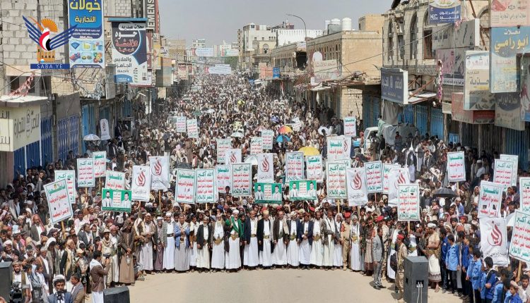 وأكد بيان صادر عن المسيرة تمسك الشعب اليمني بقضايا الأمة وفي مقدمتها القضية الفلسطينية.. مؤكدا العداء لأعداء الله والدين والأمة وعلى رأسهم أمريكا وإسرائيل ومن سار في فلكهم.