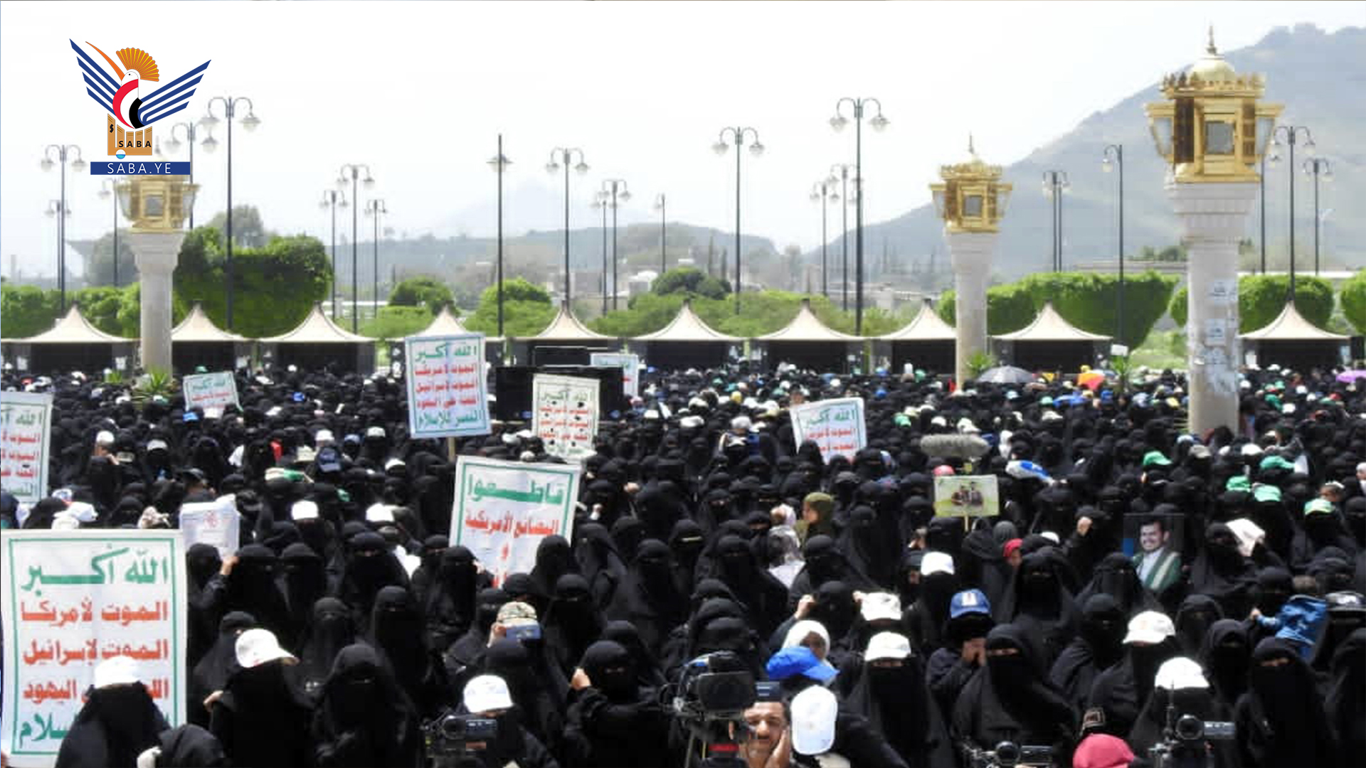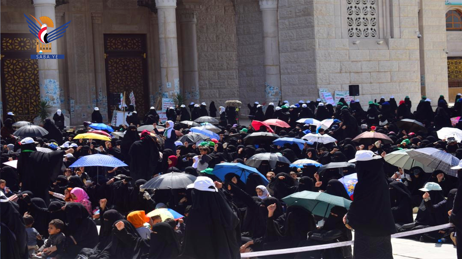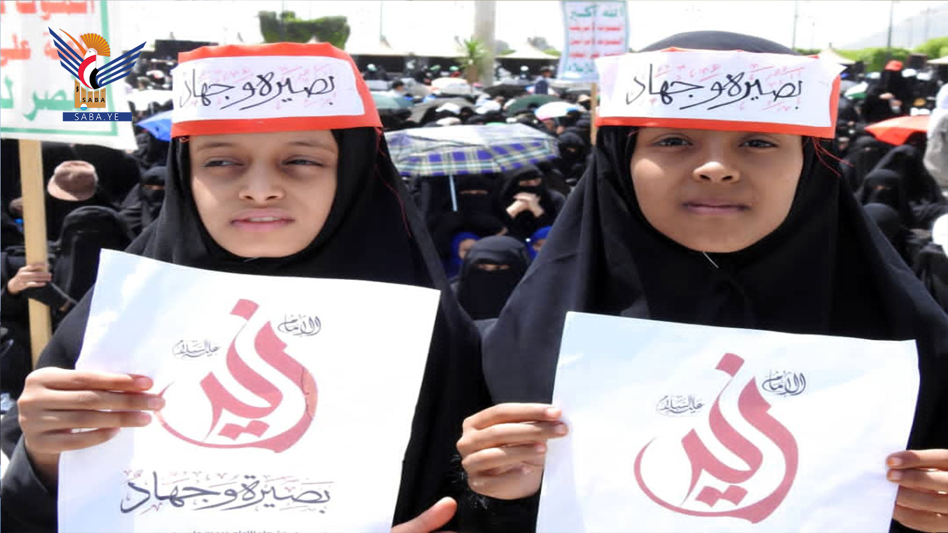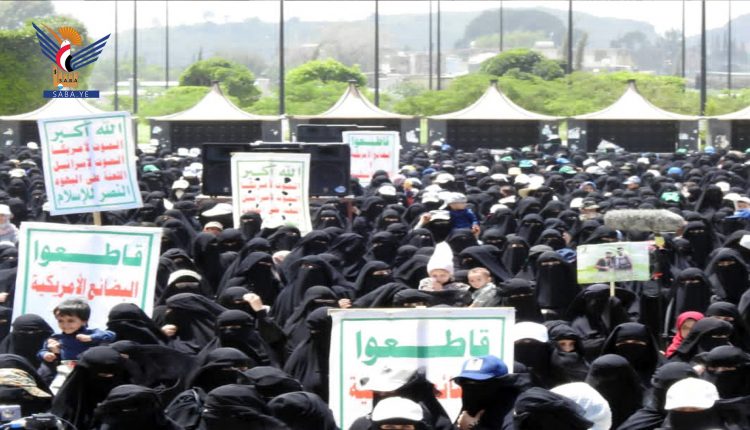 وأكد بيان صادر عن المسيرة النسائية الجماهيرية تلته الناشطة الثقافية رقية الوزير، تمسك الشعب اليمني بقضايا الأمة وفي مقدمتها القضية الفلسطينية وتقديس المقدسات ورفض تدنيسها.