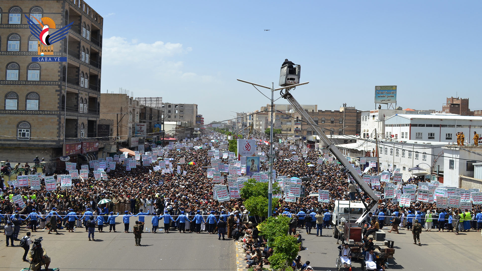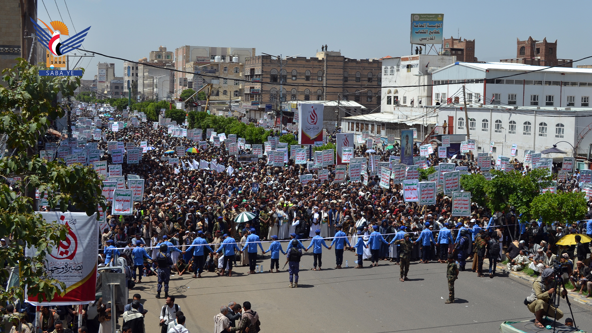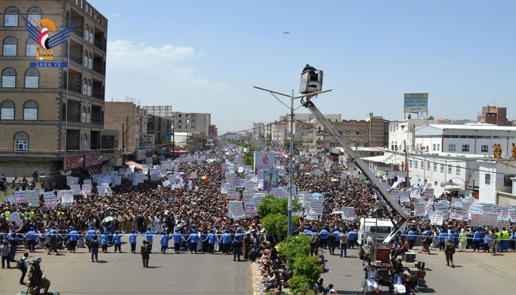 وأكد بيان صادر عن المسيرة الجماهيرية تمسك أبناء الشعب اليمني بقضايا الأمة وفي مقدمتها القضية الفلسطينية وتقديس المقدسات ورفض تدنسيها.