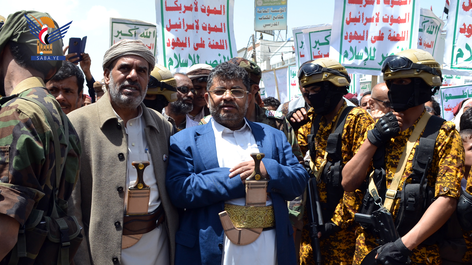 ورددت الحشود هتافات نددت باستمرار خروقات العدوان، وأكدت الاستمرار في النفير ورفد الجبهات ودعم المرابطين بقوافل المال والرجال لردع قوى العدوان، ومواصلة معركة التحرر والاستقلال، ورفض الذل والخنوع والتبعية.