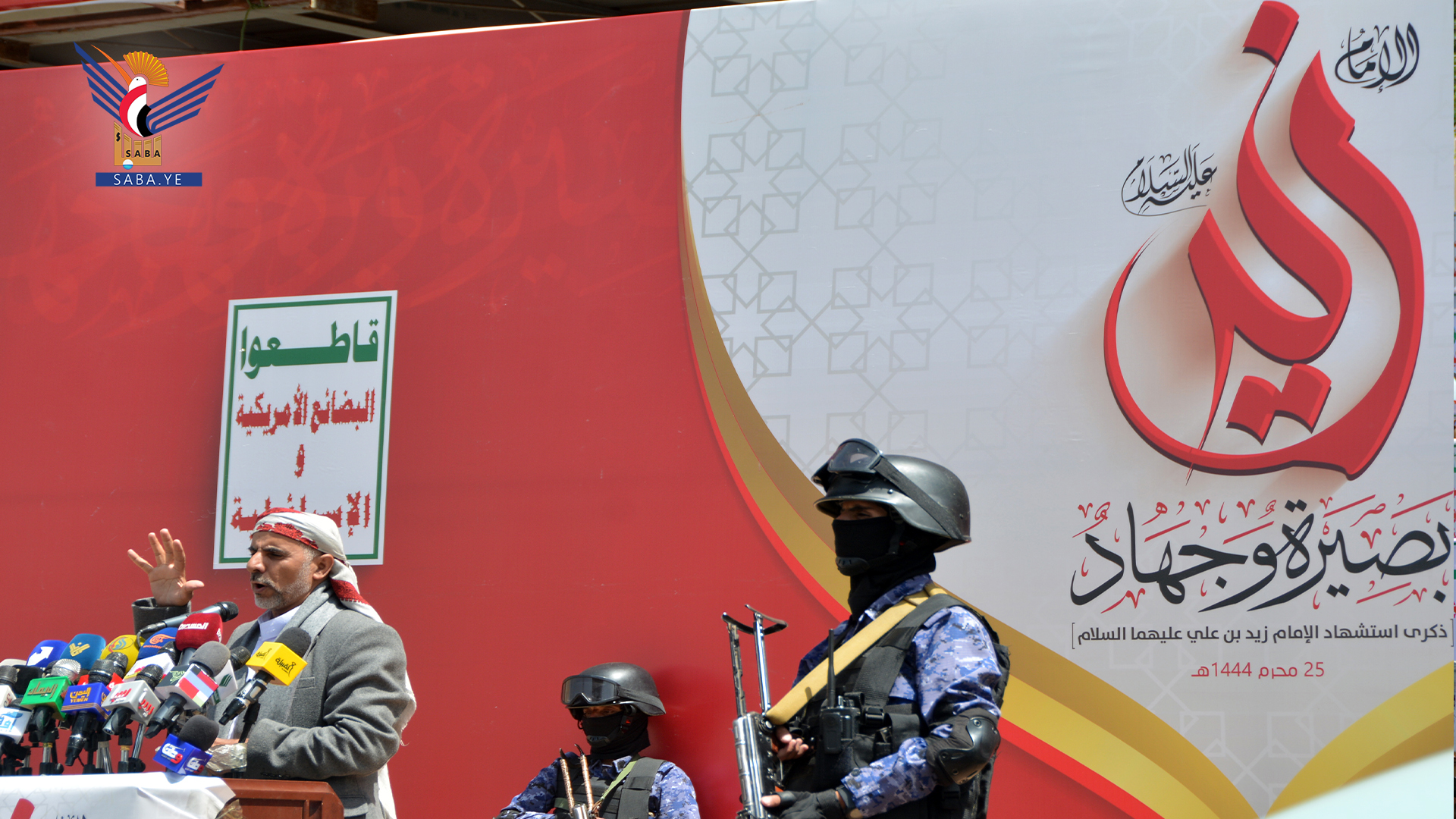 وأضاف “إنه اليوم الذي نجدد فيه وفاءنا وولاءنا وارتباطنا بالنهج النبوي، اليوم الذي نُحيي فيه ذكرى استشهاد أحد أبرز عظماء المدرسة النبوية الإمام زيد بن علي، هذه المدرسة التي رسم معالمها خاتم الأنبياء صلى الله عليه وآله وسلم في يوم المساومة عندما جاء الأعداء يساومون النبي على رسالة الله ودينه، وأرادوا بذلك أن يضعفوا عزيمة من ناصروا النبي الكريم عليه الصلاة والسلام”.