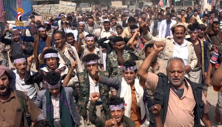 وأكد بيان صادر عن المسيرة، تمسك الشعب اليمني بقضايا الأمة وفي مقدمتها القضية الفلسطينية وموصلة العداء لأعداء الله والأمة وعلى رأسهم أمريكا وإسرائيل.