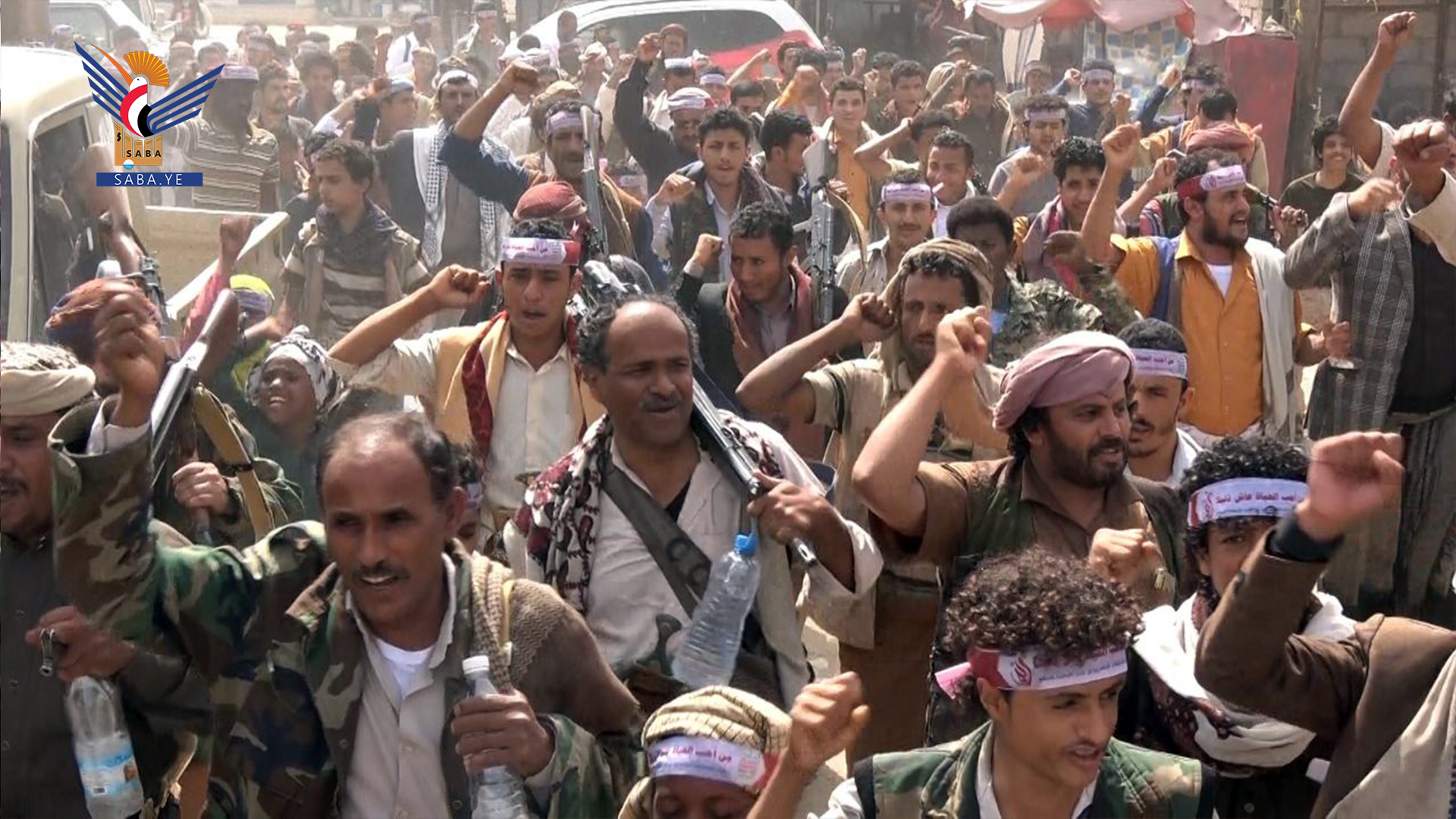 وردد المشاركون في المسيرة من أبناء مديريات مربع مراد، هتافات الحرية ورفعوا اللافتات المؤكدة السير على خطى الإمام زيد عليه السلام في مواجهة الطغاة والمستكبرين من قوى العدوان الأمريكي السعودي الإماراتي.