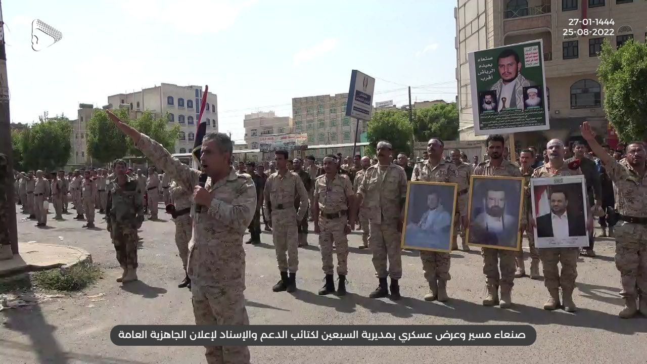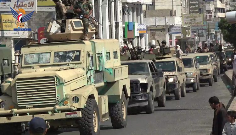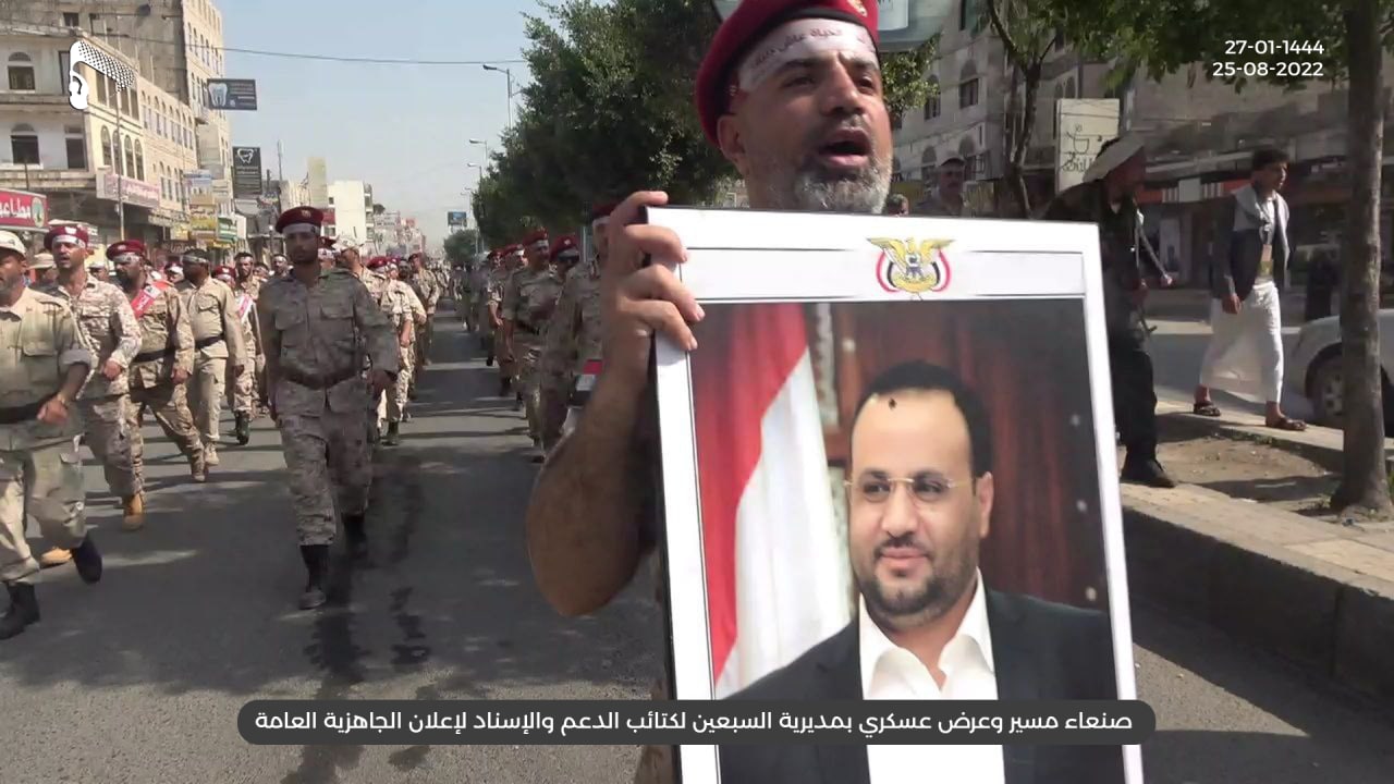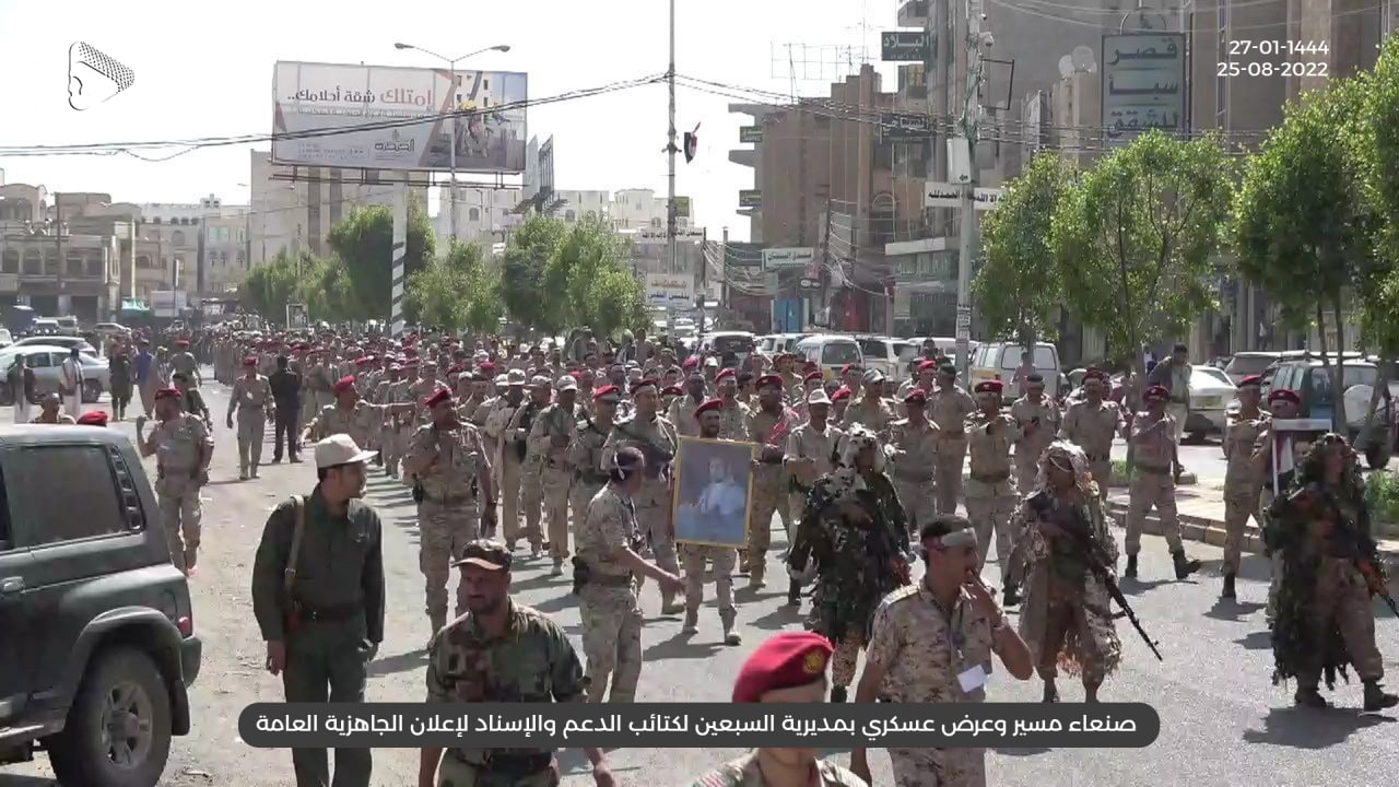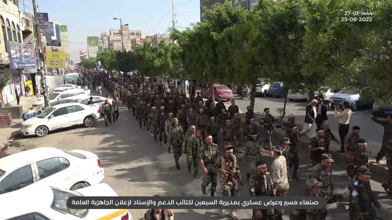 شهدت مديرية السبعين بأمانة العاصمة صنعاء، الخميس، مسير وعرض عسكري لكتائب من قوات الدعم والإسناد بمختلف وحداتها جاب عدداً من شوارع المديرية، ضمن حملة التحشيد والتعبئة العامة تحت شعار “انفروا خفافا وثقالا”.