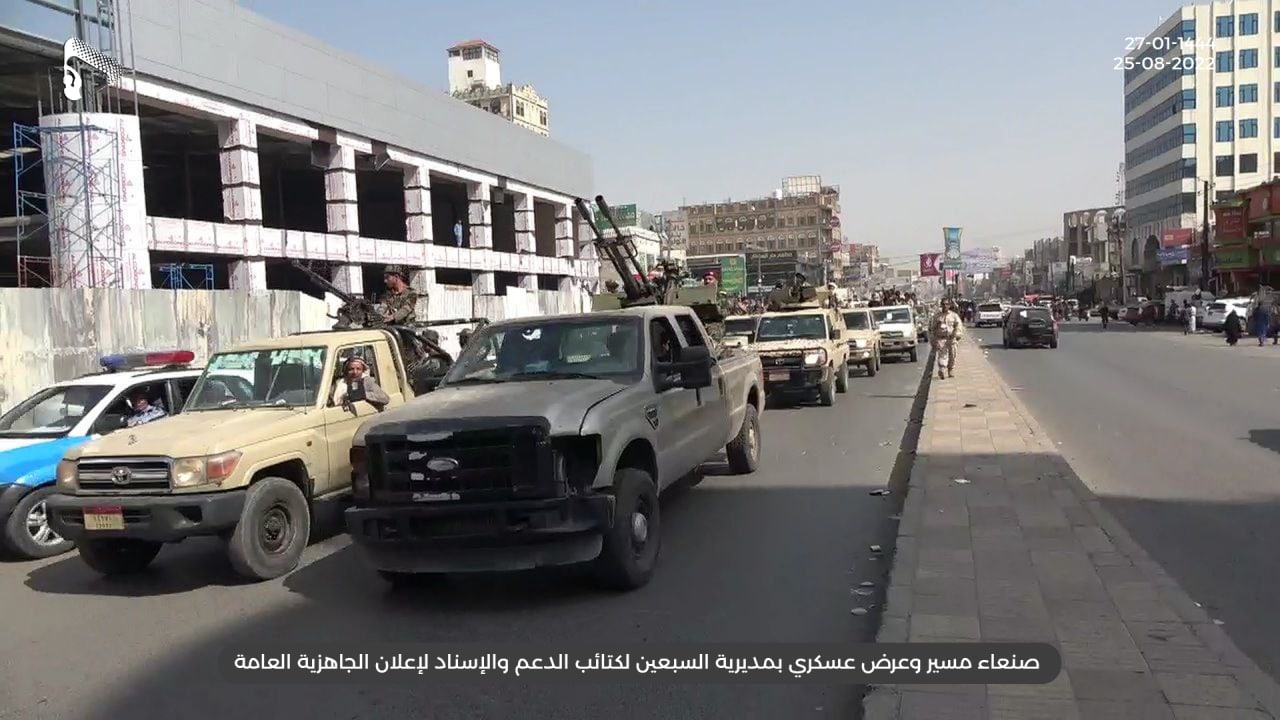 شاهد مدرعات وحشود عسكرية ضخمة تجوب شوارع منطقة السبعين وأصوات الهتافات المدوية تصدح في سماء العاصمة صنعاء (فيديو)