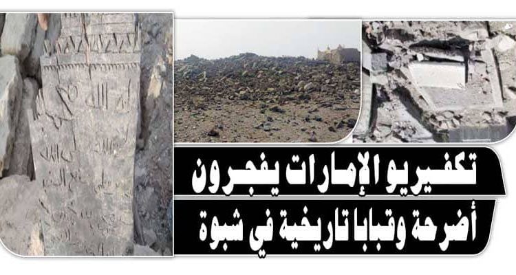 وأكد مكتب الإرشاد في بيان، أن هدم الأضرحة والمعالم التاريخية في شبوة يدل على خبث المشروع والفكر المنحرف لقوى الاحتلال ومرتزقتها.