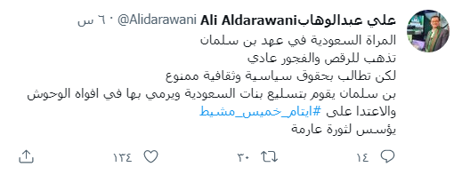 وتشهد المملكة العربية السعودية منذ تولي محمد بن سلمان ولاية العهد الكثير من القمع والاضطهاد والاعدامات في محاكم السلطة السعودية حتى على منشور بصفحات التواصل الاجتماعي