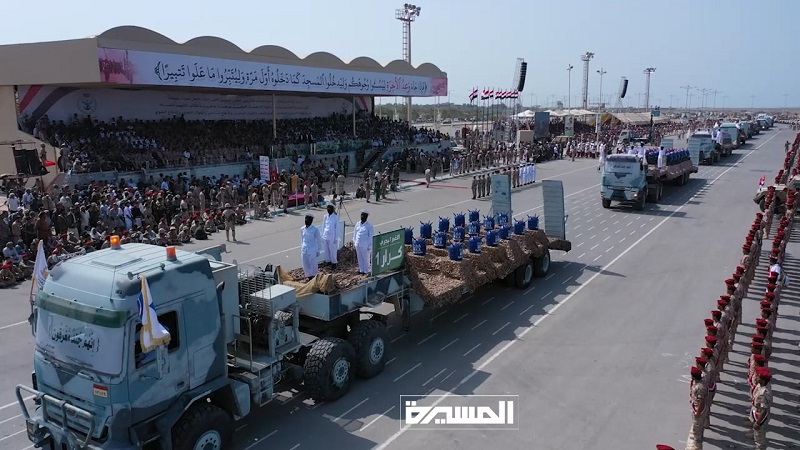 وكانت مدينة الحديدة، شهدت اليوم الخميس، عرضاً عسكرياً مهيباً للمنطقة العسكرية الخامسة وألوية النصر والقوات البحرية والجوية تحت عنوان (وعدة الآخرة)، بحضور الرئيس مهدي المشاط وقيادات الدولة.