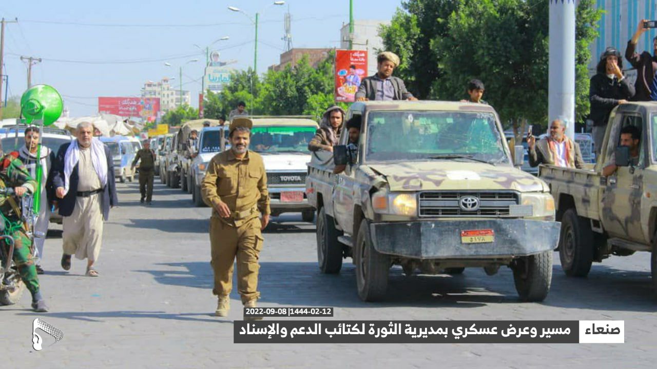 شهدت مديرية الثورة بأمانة العاصمة صنعاء، الخميس، عرضاً عسكرياً رمزياً ضمن جهود حملة التحشيد والتعبئة لرفد الجبهات، تحت شعار “انفروا خفافا وثقالا”.