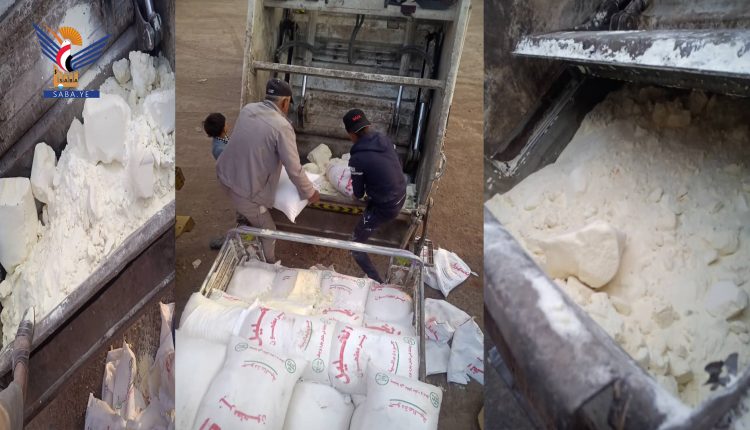وأوضح بيان صادر عن الهيئة اليمنية للمواصفات والمقاييس وضبط الجودة، أنه تم إتلاف 86 كيس بودرة و25 كيسا فارغا في منفذ مركز رقابة ذمار بسبب وجود تكتل في المنتج، وتغيّر في الخواص الطبيعية (الرائحة)، إضافة إلى أن المنتج معبأ في عبوات “بولى برويلين”، خاصة بتعبئة منتج إخر (بر مطحون) وتدوين تاريخ الصلاحية على الأكياس الفارغة مسبقا.