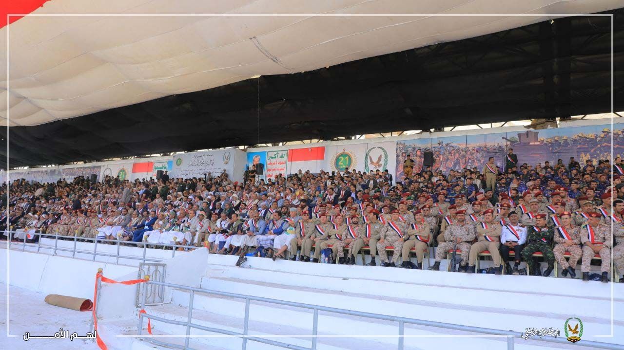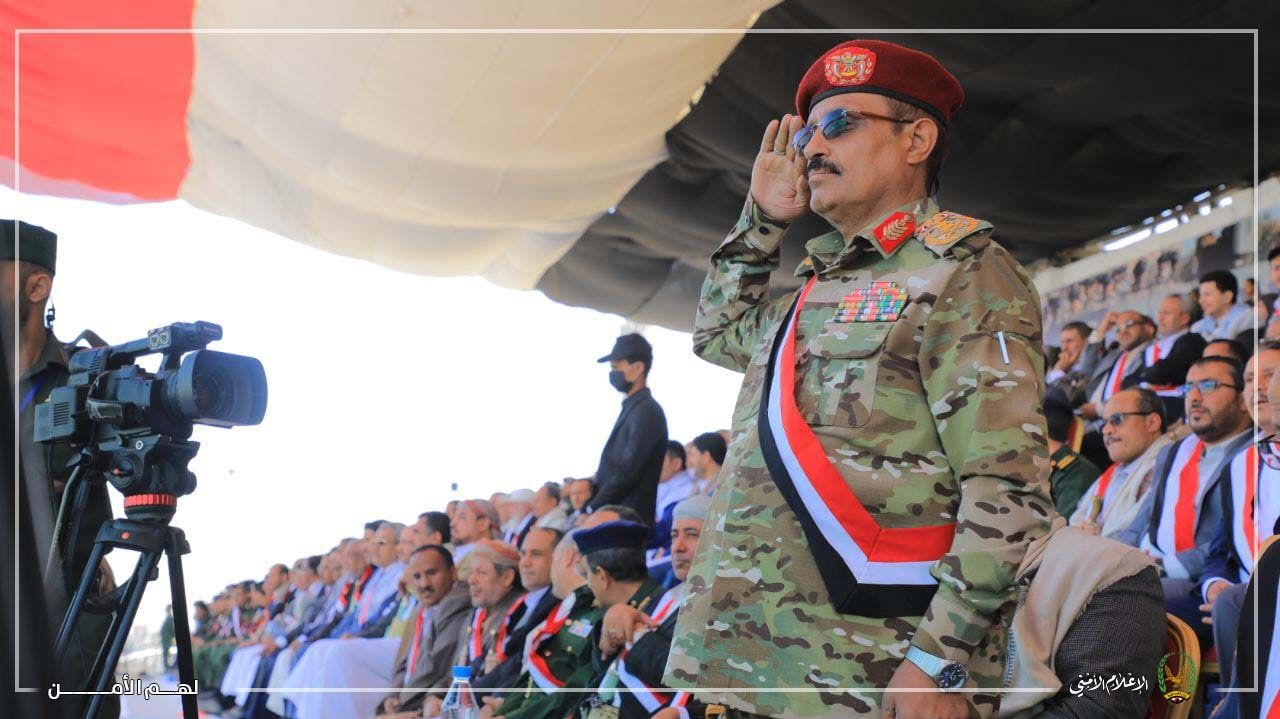 وقال” إذا كان لنا من رسالة في هذا اليوم العظيم فهي لقائد المسيرة القرآنية السيد عبد الملك بدر الدين الحوثي، والذي نقول له نحن جند الله وأنصاره تحت لواءك ورهن إشارتك على أتم الجاهزية لجميع المهام الأمنية والعسكرية وكلنا ثقة بالله وصدق وعده للمؤمنين بالغلبة والفلاح والنصر”.