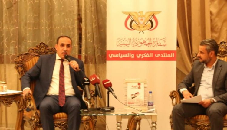 جاء ذلك خلال مشاركته، أمس الثلاثاء، في ندوة سياسية نظمها المنتدى الفكري والسياسي اليمني في العاصمة السورية دمشق بعنوان “مسارات ثورة 21 سبتمبر” تزامناً مع الذكرى الثامنة لثورة 21 سبتمبر 2014م.