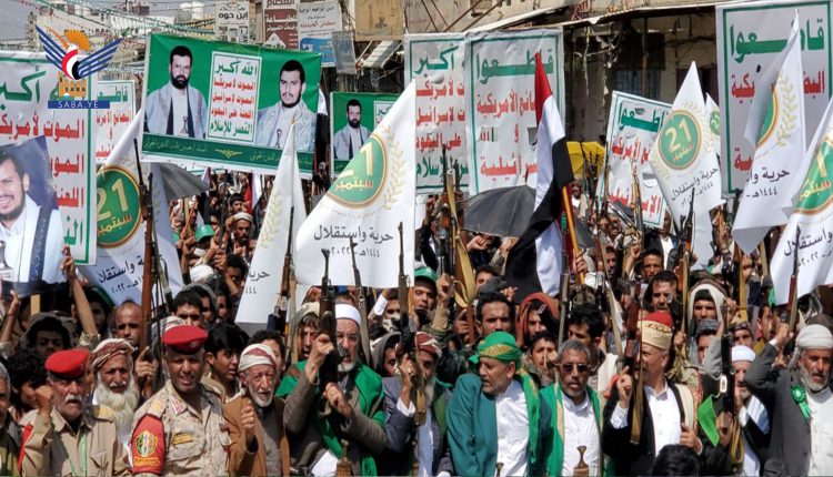مسيرة جماهيرية حاشدة بصعدة احتفاء بالعيد الثامن لثورة 21 سبتمبر