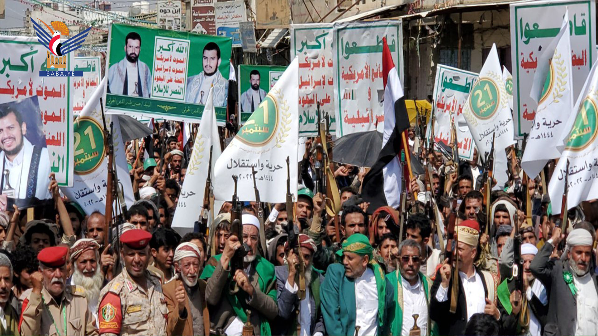 وأكد بيان صادر عن المسيرة أن ثورة 21 سبتمبر ثورة شعبية خالصة أعادت الاعتبار لليمنيين بإسقاط مؤامرة التقسيم والأقلمة، ومثلت حافزاً للشعب اليمني للتصدي للعدوان، ووضعت حدا للوصاية الأجنبية، ولها من الإنجازات ما يجعلها من أنزه وأنجح الثورات.