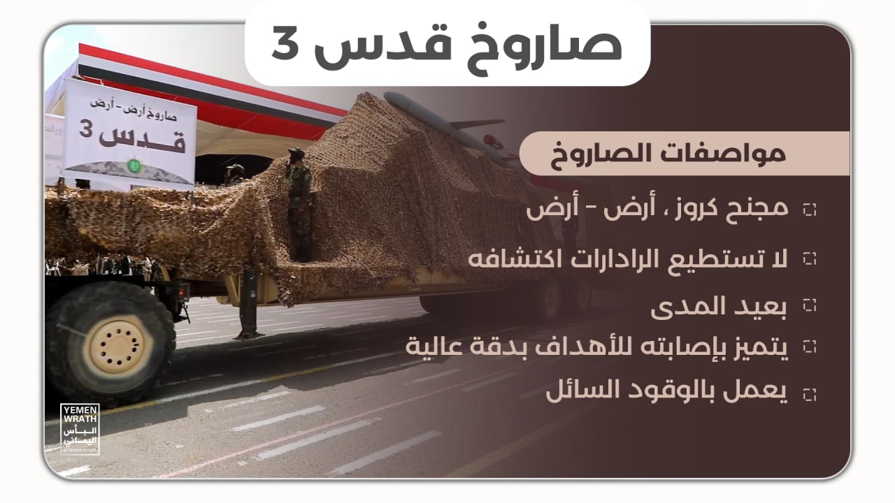 وتابع قائلاً: “الموقع الجغرافي الذي يمتاز فيه اليمن الشقيق وسلاح الصواريخ المتطور الذي أصبح يمتلكه الجيش اليمني وبالتحديد صاروخ “قدس ٣” بات يرسل رسائل واضحة للعدو”.