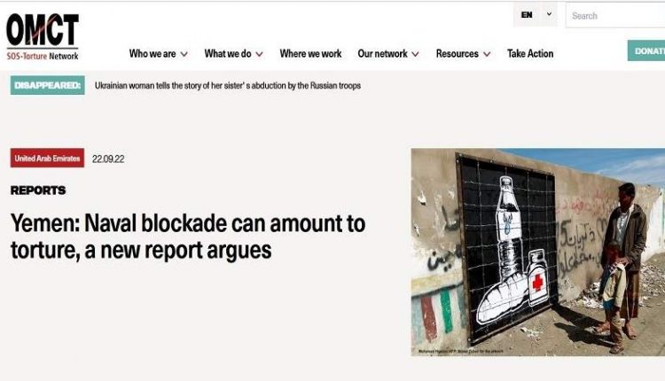 التقرير الصادر عن المنظمة العالمية لمناهضة التعذيب (OMCT) بعنوان “التعذيب في حركة بطيئة”، أوضح أن الحصار البحري المفروض على اليمن من قبل التحالف الذي تقوده السعودية ساهم بشكل كبير في دفع المدنيين اليمنيين إلى المجاعة ويمكن اعتباره تعذيباً.