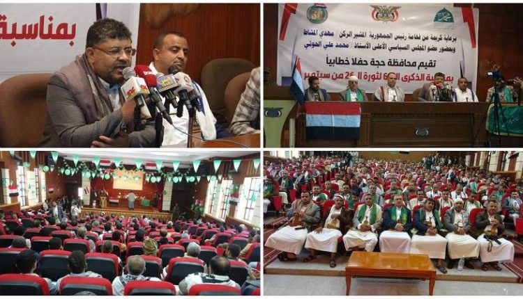 من جانبه، أوضح محافظ حجة هلال الصوفي أن ثورة 21 سبتمبر امتداد لثورة 26 سبتمبر وحققت أهدافها، معتبرا الاحتفال بهذه المناسبة محطة لتجديد الوعي المجتمعي وإدراك المؤامرات التي تحاك ضد اليمن.