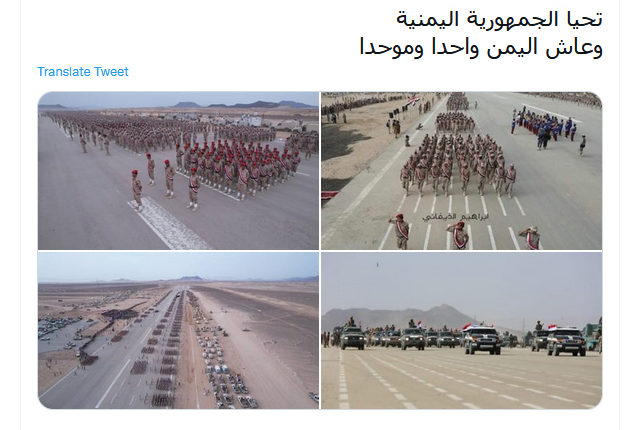 واختتم العزي تغريدته بالقول :”تحيا الجمهورية اليمنية.. وعاش اليمن واحدا وموحدا”.