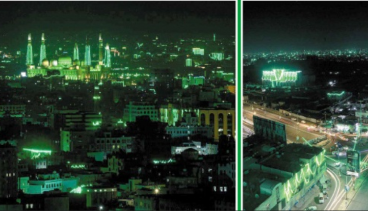 واكتملت العاصمة صنعاء يوم أمس بحلتها المحمدية، إذ تزينت الشوارع والطرقات والأبنية الحكومية والمنازل في العاصمة صنعاء بالأضواء الخضراء الزاهية، ابتهاجاً بمولد النور الأعظم رسول الله محمد صلوات الله عليه وعلى آله وسلم، الذي تحل علينا ذكراه يوم 12 ربيع الأول.