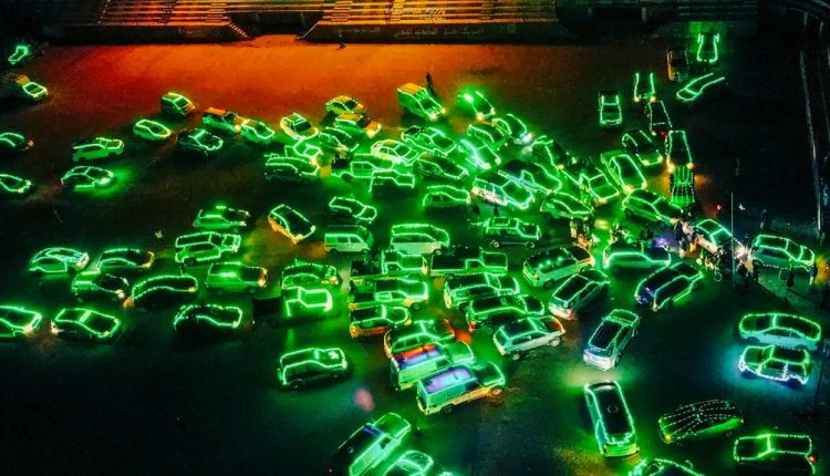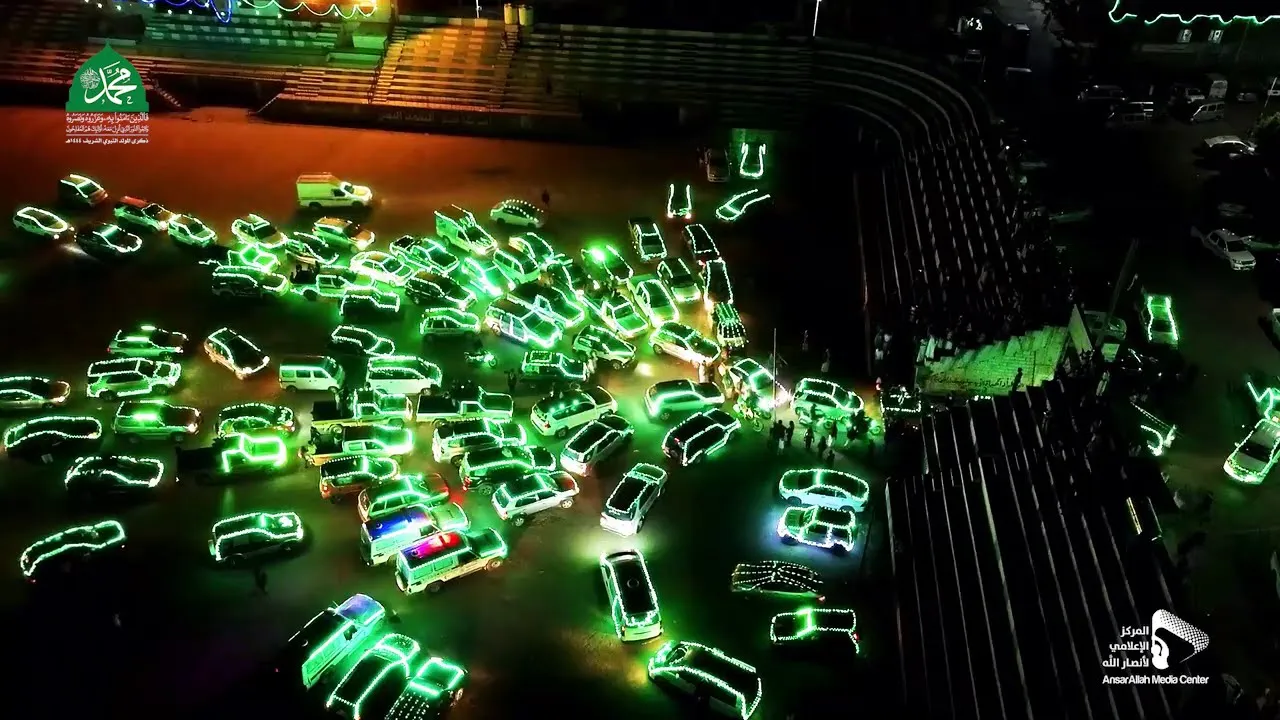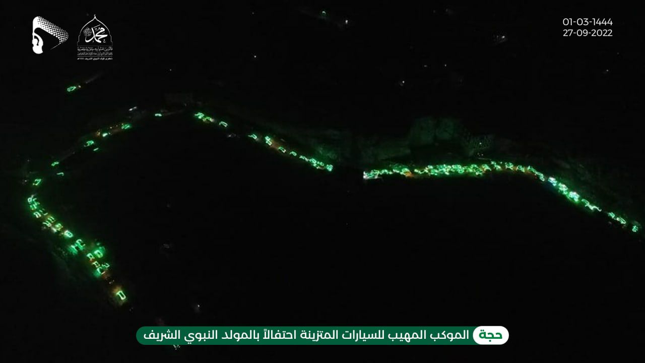 ورسم الموكب الأول من نوعه بهذا الحجم والذي تم توثيقه من الجو المميز بشعار المولد (الضوء الأخضر) الساطع من 300 سيارة تجوب شوارع المدينة وكيف اخترق عتمة الليل ما اسبغ على المدينة صورة فرائحية مفعمة بالحيوية لجميع سكان المدينة الذين هرعوا لجنبات الارصفة لمشاهدة العرض لارتباطه بالمناسبة الغالية على قلوب اليمنيين جميعاً.