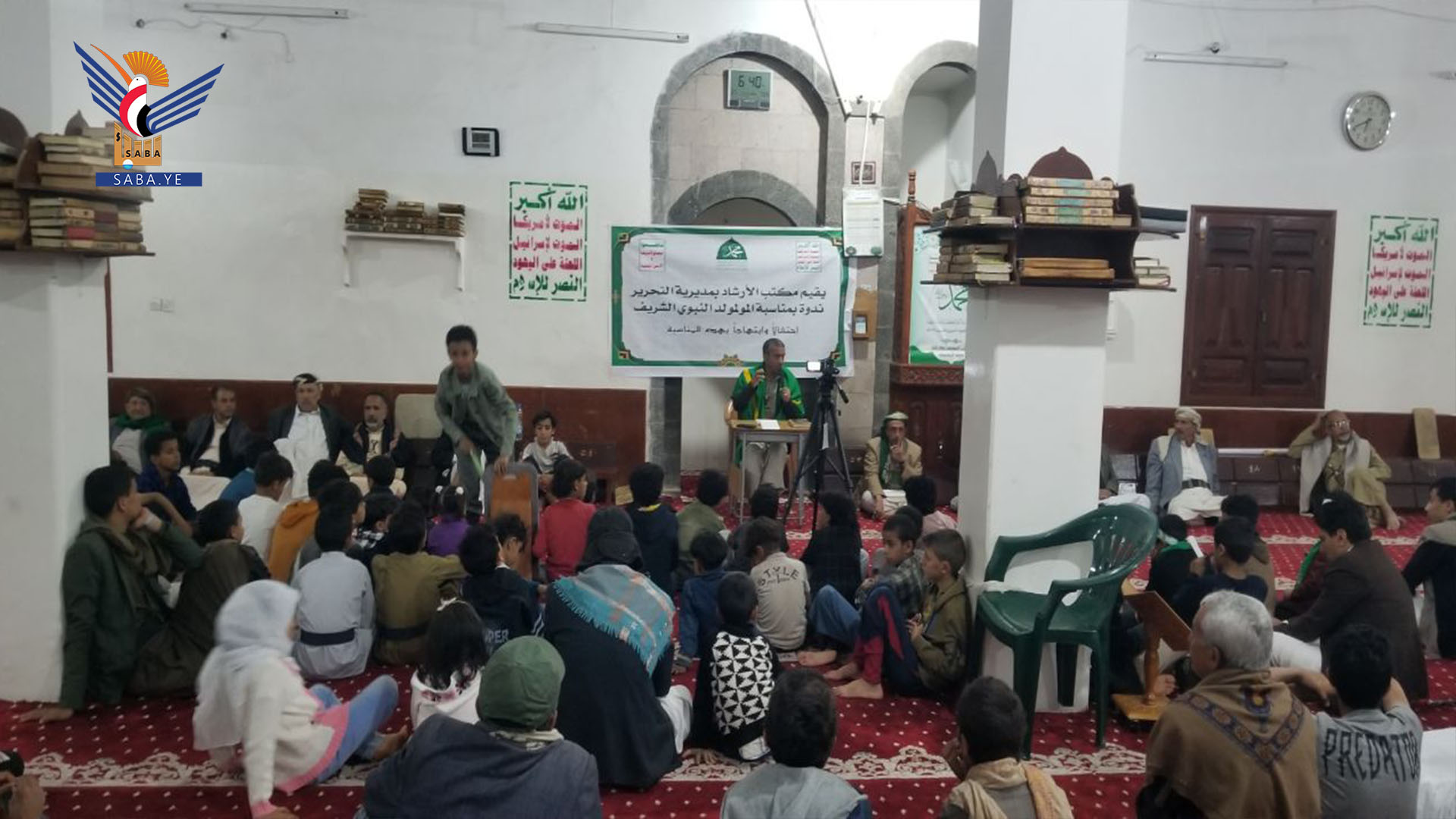 ففي الندوة الثقافية بجامع السنباني في التحرير، اعتبر وكيل أول الأمانة خالد المداني الاحتفاء بالمولد، تجديداً للولاء لله ورسوله وتوثيق الارتباط بالنهج المحمدي لتعزيز الصمود والثبات في مواجهة الأعداء وإفشال مخططاتهم.