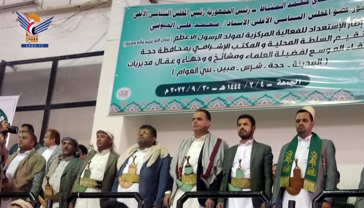 وعبر عن الثقة في أن تكون حجة بعلمائها ومشايخها وأبنائها، في مقدمة الصفوف في الفعالية المركزية في يوم 12 من ربيع الأول كما كانوا سباقين في نصرة الجمهورية والدفاع عن الوطن .. مشيراً إلى دور الجميع في التحشيد للاحتفال بهذه المناسبة الدينية.