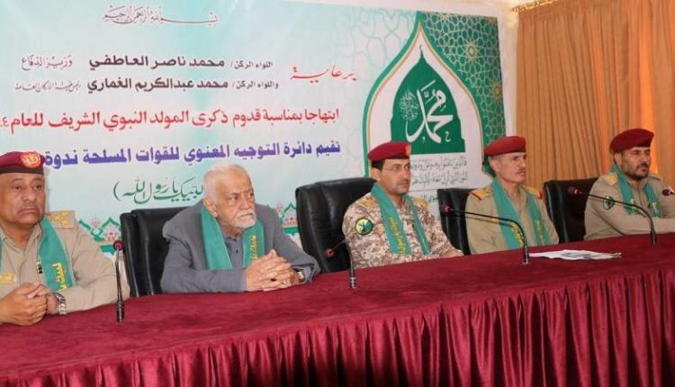 نظمت دائرة التوجيه المعنوي للقوات المسلحة اليوم السبت، بصنعاء فعالية ثقافية وخطابية احتفاء بقدوم ذكرى المولد النبوي الشريف.
