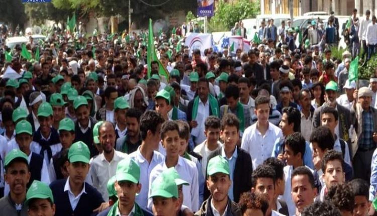 مسيرة طلابية بمحافظة إب احتفاء بالمولد النبوي الشريف