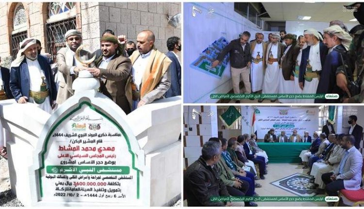 قام الرئيس مهدي المشاط رئيس المجلس السياسي الأعلى اليوم الأحد بصنعاء، بوضع حجر الأساس لمستشفى النبي الأكرم التخصصي لأمراض الكلى.