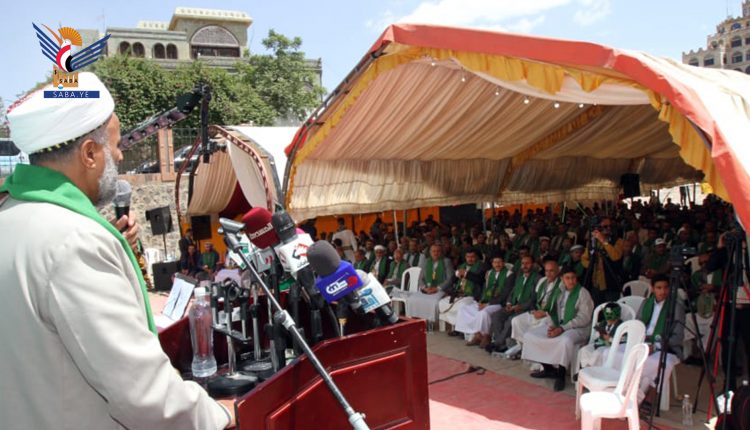وأشار إلى أن الحديث عن الرسول صلى الله عليه وسلم هو حديث عن نعمة الله التي تستوجب الشكر.. وقال ” لا ينبغي أن نعير بالا لمن يزعمون أن الاحتفال بهذه المناسبة بدعة، في حين أن الله سبحانه وتعالى قال في كتابه الكريم (فَالَّذِينَ آمَنُواْ بِهِ وَعَزَّرُوهُ وَنَصَرُوهُ وَاتَّبَعُواْ النُّورَ الَّذِيَ أُنزِلَ مَعَهُ أُوْلَئِكَ هُمُ الْمُفْلِحُونَ) والتعزير هو التعظيم والإجلال والتقدير، وهذا ما يفعله الشعب اليمني اليوم”.