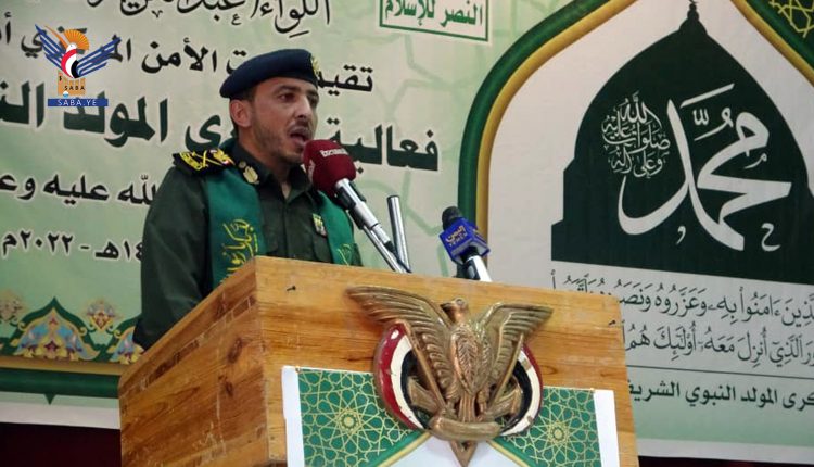 واستعرض ما تمر به الأمة، من هوان وضعف لابتعادها عن نهج الرسول الأكرم، ما يتطلب العودة الصادقة إلى كتاب الله وسنته نبيه .. مؤكداً ضرورة استفادة قادة وضباط وأفراد الأمن المركزي من هذه المناسبة في تعزيز الصمود لمواجهة العدوان.