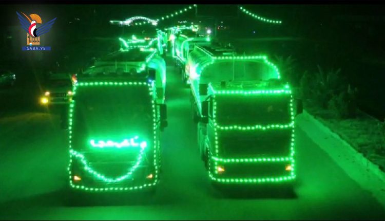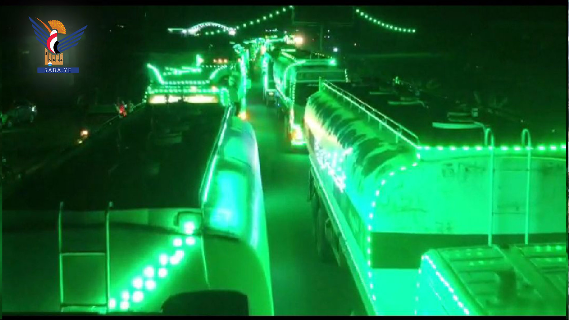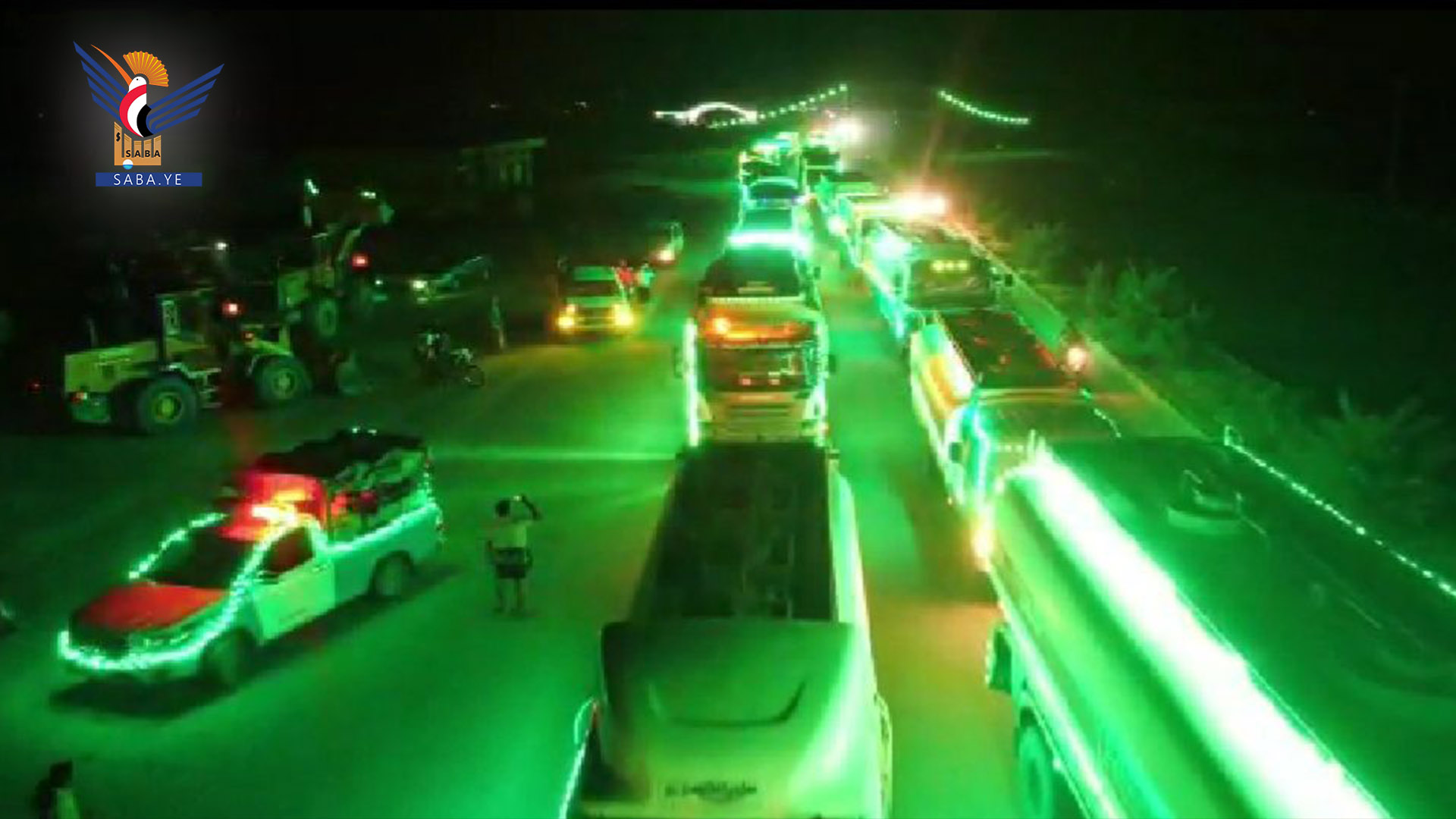 انطلقت من مديرية عبس بمحافظة حجة مسيرة ضوئية مكونة من 50 قاطرة مشتقات نفطية، تزدان بالأضواء الخضراء، احتفاء بذكرى المولد النبوي الشريف.