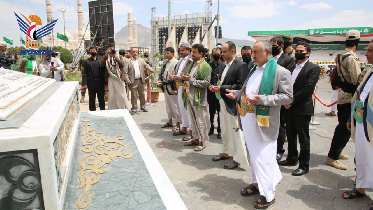 وزار الرئيس المشاط ومعه وزير الداخلية اللواء عبدالكريم الحوثي ووزير الاتصالات المهندس مسفر النمير ورئيس هيئة الأركان العامة اللواء الركن هاشم الغماري، ضريح الرئيس الشهيد صالح الصماد في ميدان السبعين، وتم قراءة الفاتحة على روحه وأرواح شهداء الوطن.