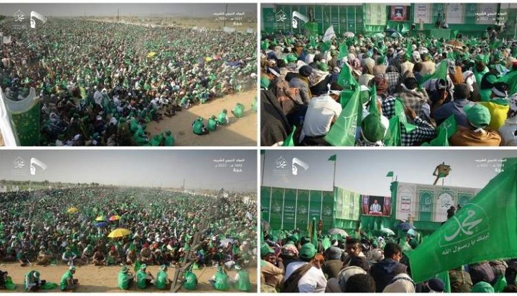 وجدد المحتشدون الولاء الصادق لله ورسوله والتمسك بالمنهج المحمدي في البذل والعطاء والتضحية والشجاعة والصدق والأمانة والتسامح والتراحم، معتبرين انتصارات أبطال الجيش واللجان الشعبية في ميادين الصمود وجبهات العزة والكرامة والتطور الذي شهدته المؤسستين العسكرية والأمنية والصمود الأسطوري لأحفاد الأنصار إحدى ثمار التولي الصادق لله والرسول الأعظم باعتباره منهاج حياة للأمة للخلاص من العبودية.