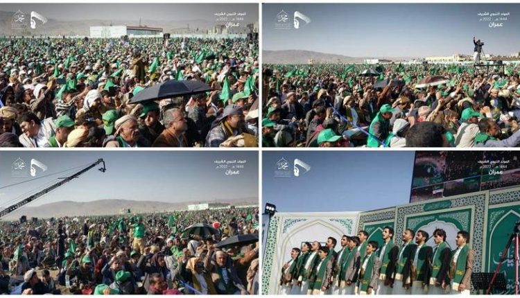 احتشد أبناء محافظة عمران اليوم السبت، في ساحة العروض بمدينة عمران لإحياء ذكرى المولد النبوي الشريف على صاحبه وآله أفضل الصلاة وأزكى التسليم.
