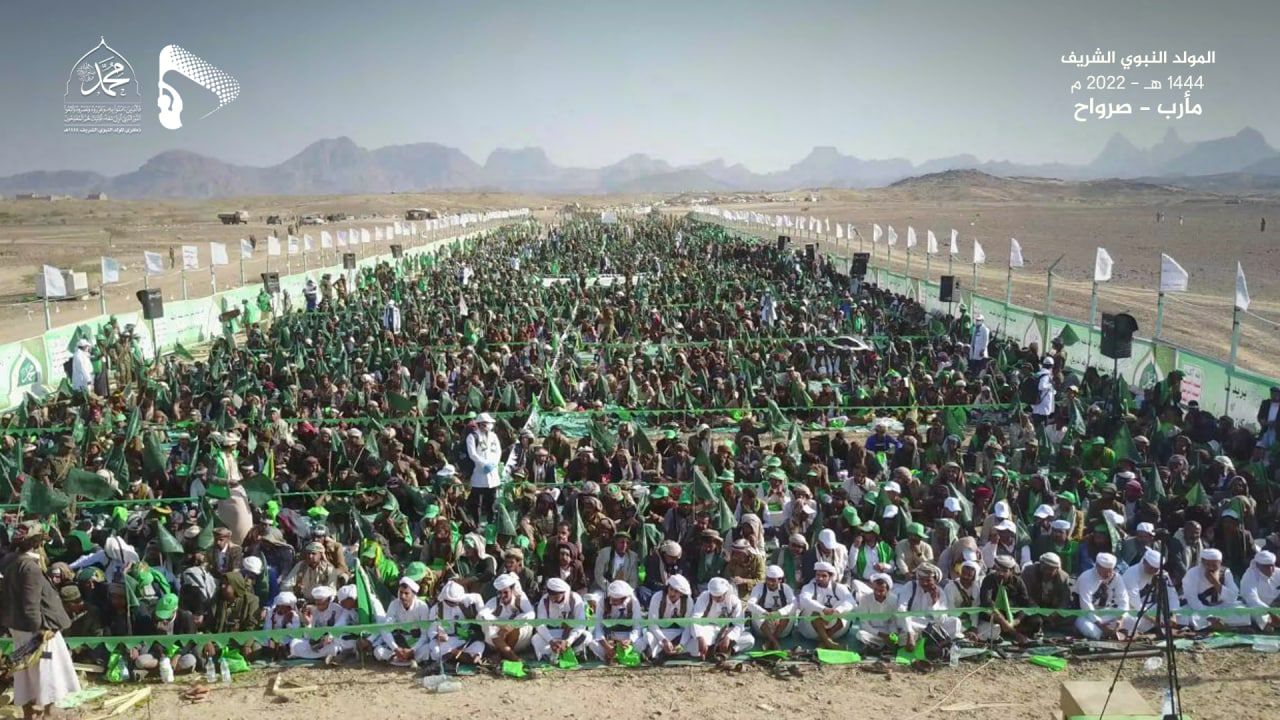شاهد: حشود يمانية تحيي ذكرى المولد النبوي الشريف في مأرب (فيديو)
