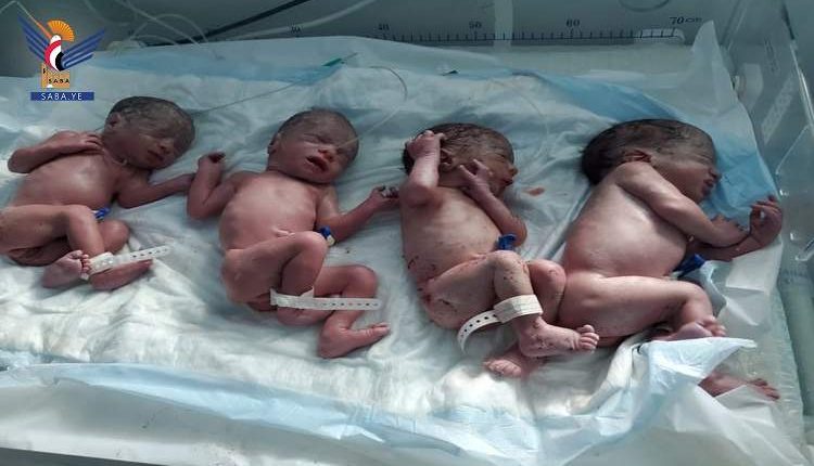 شهد مستشفى السبعين للأمومة والطفولة بأمانة العاصمة، اليوم، ولادة اربعة توائم إناث لامرأة في العقد الثالث من عمرها بعملية قيصرية.