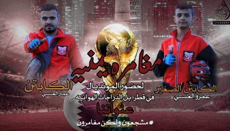 غادر نجما أهلي صنعاء والمنتخب اليمني للتايكواندو عمار فهد العنسي وشقيقه عمرو، واللاعب الثالث محمد خالد القادري من نادي اليرموك الرياضي العاصمة صنعاء على متن دراجات هوائية إلى دولة قطر لحضور كأس العالم 2022.