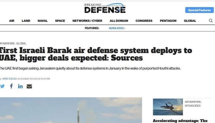 وقال موقع “Breaking Defense” الأمريكي المتخصص في الشؤون العسكرية، إن نسخة من نظام الدفاع الجوي “باراك” تم نشرها في الإمارات بموجب اتفاقيات التطبيع بين أبوظبي وكيان العدو، موضحا أن هذه الخطوة سيتلوها نشر المزيد من الأنظمة.