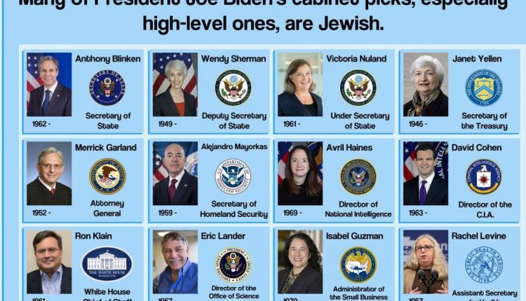 وفي الوقت الحالي في إدارة الرئيس الأمريكي “جو بايدن” هناك سلسلة من اليهود تسيطر على مفاصل القرار الأمريكي أبرزهم، وزير الخارجية التوني بلينكن، ونائبة وزير الخارجية، والنائبة الثانية لوزير الخارجية، ووزيرة الخزانة، وكذا النائب العام، ومستشار الأمن القومي، ورئيس المخابرات ووزير الصحة وغيرهم.