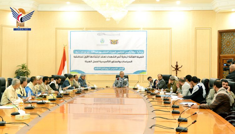 ناقشت الهيئة العامة لرعاية أسر الشهداء في اجتماعها اليوم برئاسة رئيس مجلس الوزراء الدكتور عبدالعزيز صالح بن حبتور، السياسات والمحاور التأسيسية وأولويات مهامها بعد إعادة تشكيلها.