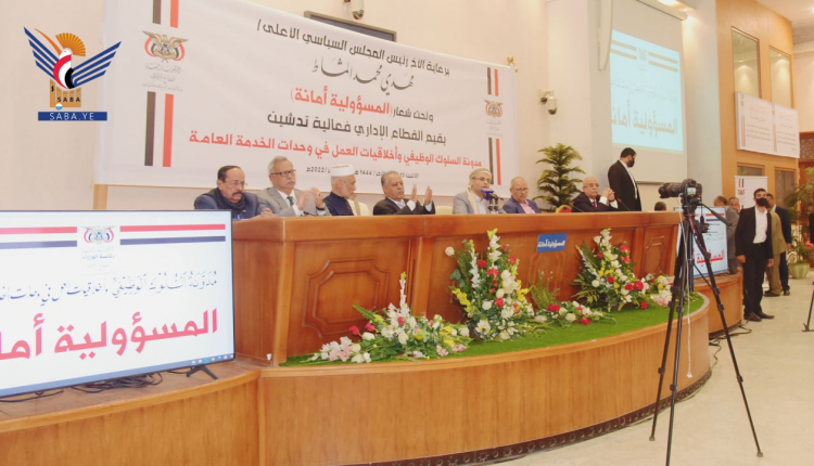 وتوجه الرئيس المشاط، بالشكر للقطاع الإداري وكل القائمين على هذه المدونة السلوكية وفي المقدمة وزارة الخدمة المدنية، على ما بذلوه من جهود في إخراج المدونة لتمثل أول إنجازات خطط العام 1444هـ.